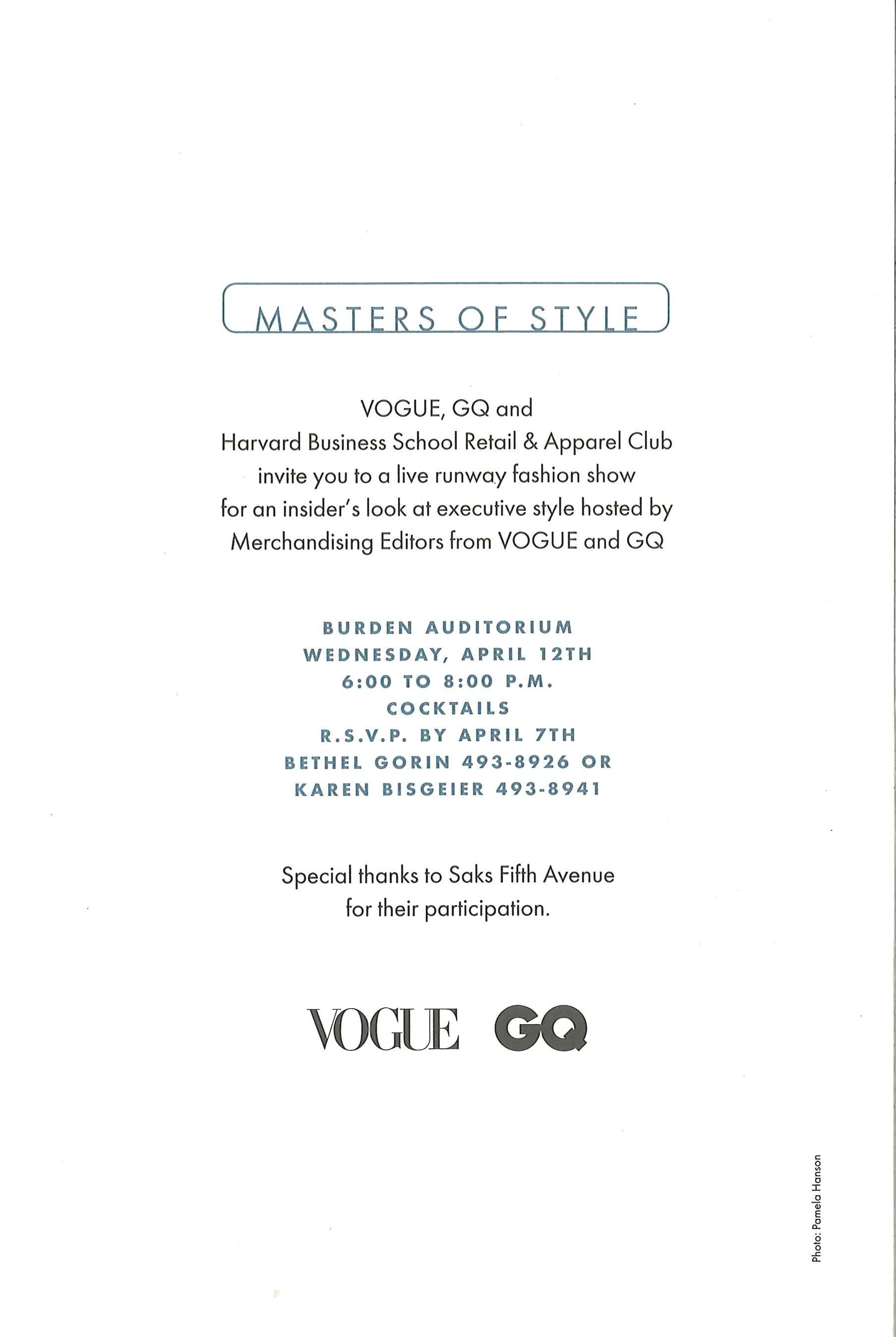 Masters of Style – Up Close Masters of Style Sell Sheet Masters of Style Invitation front Masters of Style Invitation back