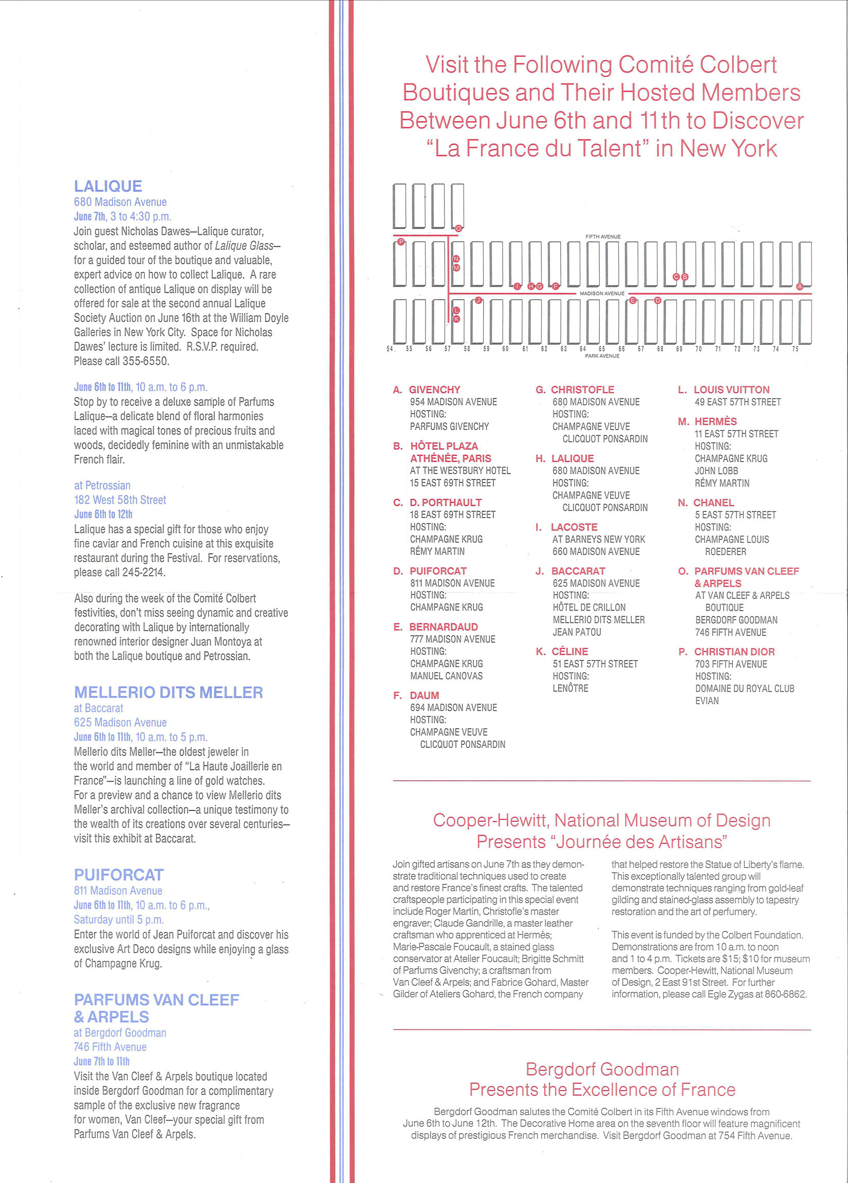 The is Page 3 of the brochure for the annual Comité Colbert event celebrating French luxury brands. Sent to Vogue subscribers who had RSVP’d for the event. I researched and wrote all the copy while working directly with each company represented in the brochure.