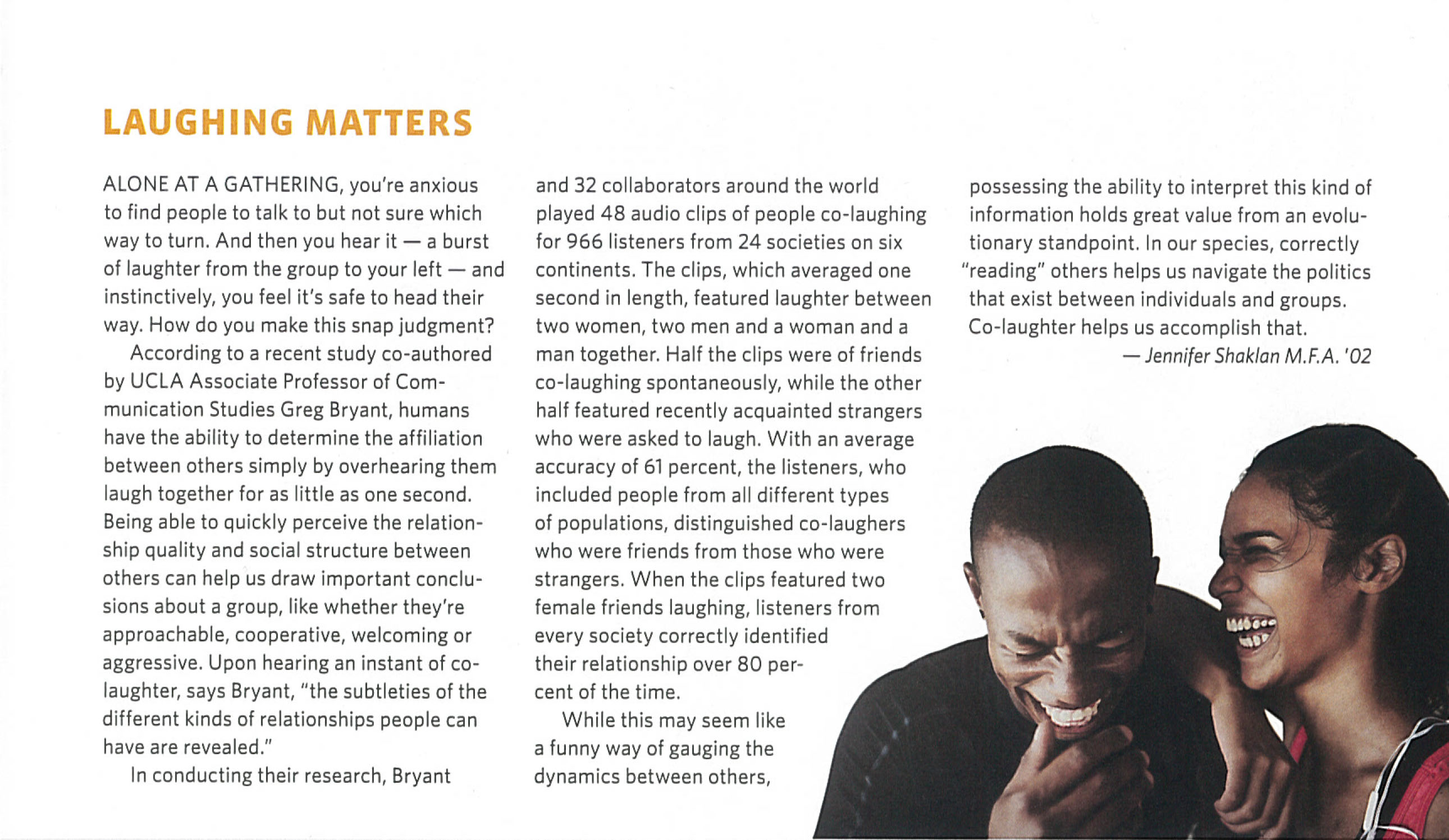 UCLA Mag 1-17 Laughing Matters Share this:ShareTweet Click to email a link to a friend (Opens in new window) Email Comments are closed.